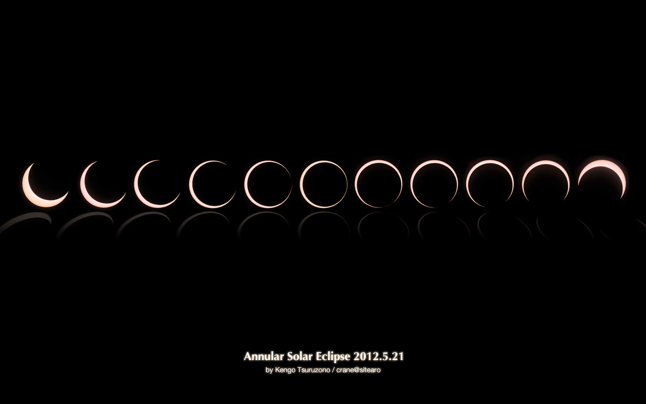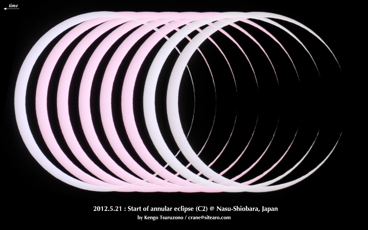 金環日食の前後のみを連続写真で並べてみました。なにか太陽が転がっているかのような映像になりました。