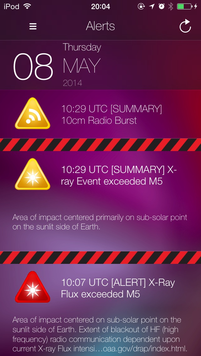太陽活動に関する専門的かつ本格的なアプリ。情報が膨大すぎて見切れない程。太陽黒点の詳細な情報があるのが珍しいです。