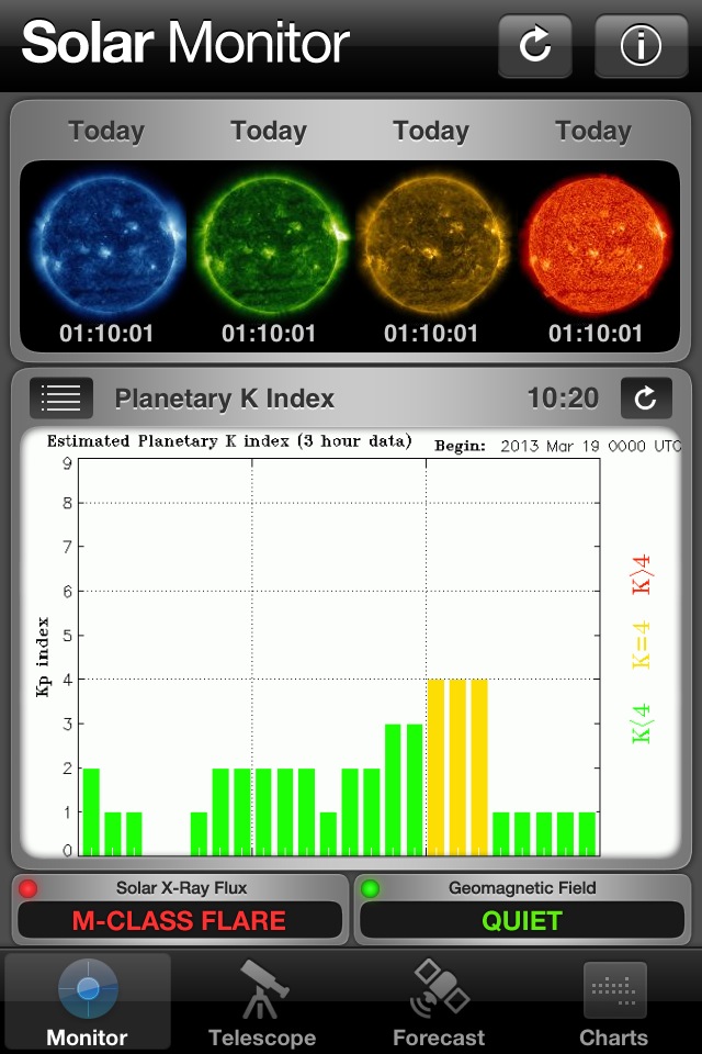 STEREO / SOHO / SDO などからのリアルタイムの映像や多くの様々な情報を表示するソフト。デザインも凝っていてなかなか綺麗です。太陽表面の爆発があった際にはプッシュ通知も行われます。