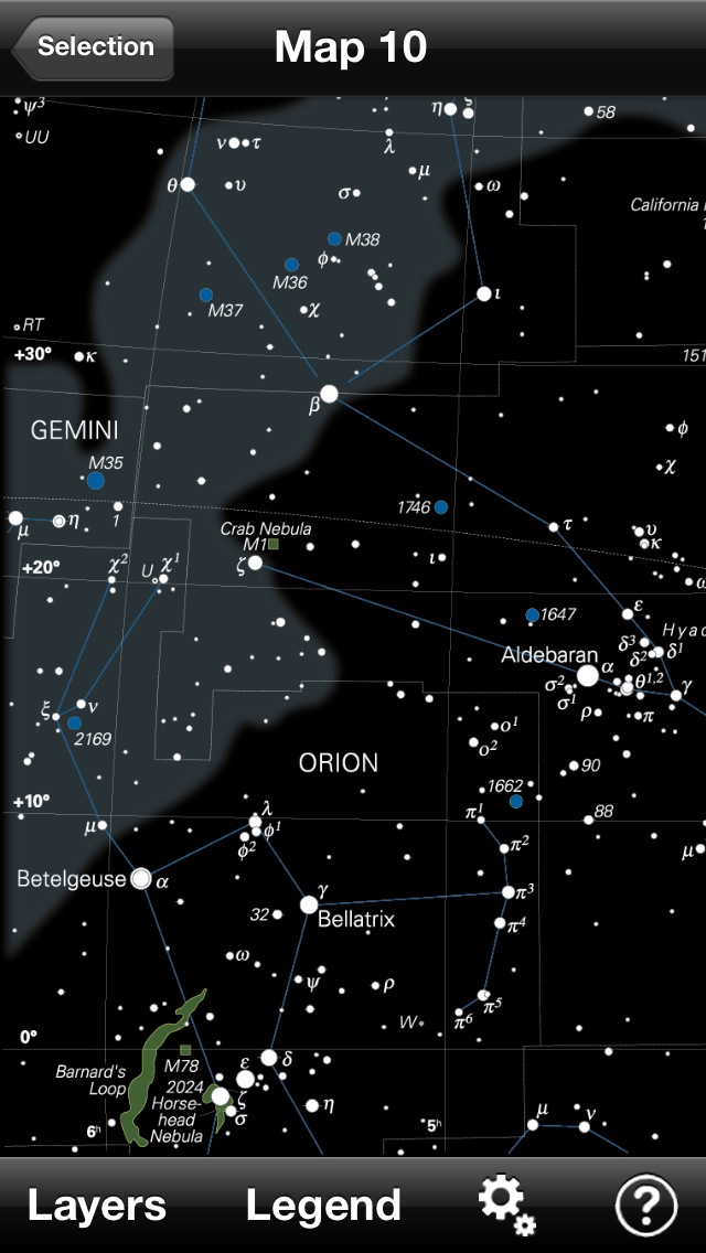 有料ですが貴重な星図アプリです。白黒反転や目に優しいナイトビジョンモードも備わっています。スクロールして境界までいくと、続きのエリアに切り替わる機能も持っています。Universal対応なので、iPadの大画面でも使えます。