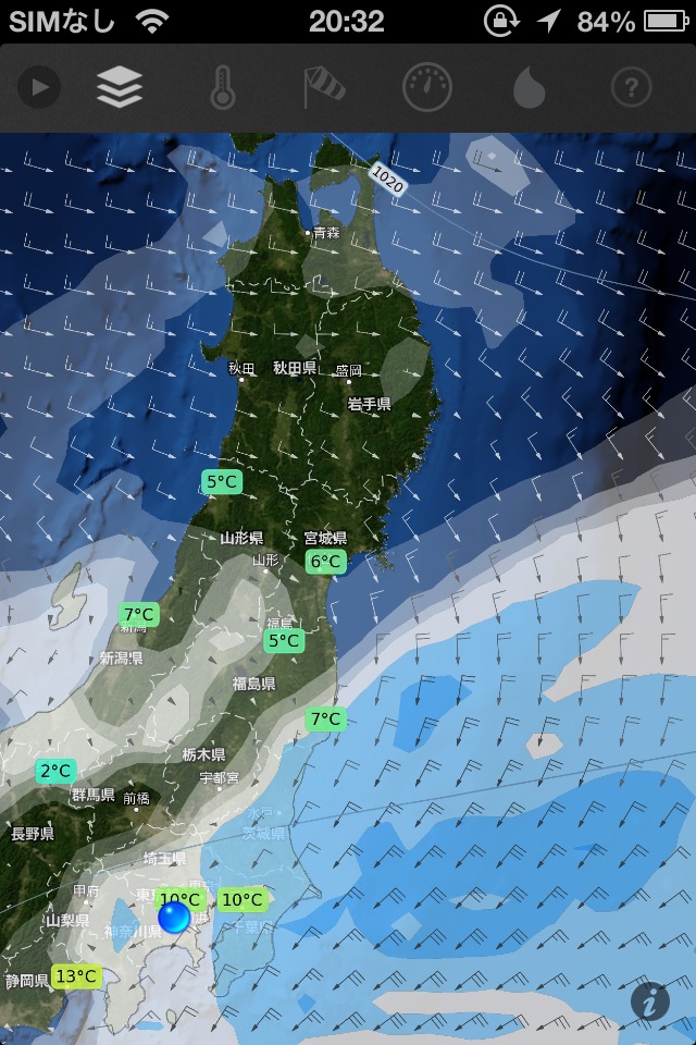 世界の気象地図を詳細に表示するソフト。日時を指定すると、その日時の気温・気圧・風速・風向・雲量・降水量の予測を見ることが出来ます。表示するものは限定できますが、雲量を見るためには [ 全てを表示 ] を選択しなければならないようです ( ここが残念 )。地図上の特定の場所を指定すると、その場所での時系列での予測表示が行われます。観測地探しには最適なソフトといえるでしょう。